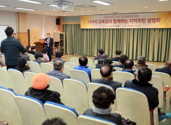 전라북도교육청은 4일 전라중학교 시청각실에서 서거석 교육감, 서난이 전북도의원, 이국 전주시의원과 주민 50여 명이 참석한 가운데 ‘전라중 이전 적지 활용 미래교육캠퍼스 설립 설명회’를 개최했다.