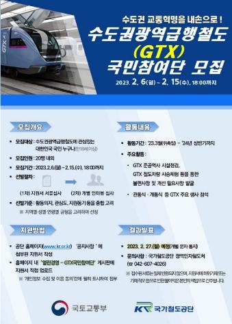 참여단은 수도권광역급행철도(GTX) 수서~동탄 구간의 개통을 1년여앞두고 최근 고조되고 있는 국민의 기대와 관심에 부응하기 위해 마련한 국민과의 특별 소통창구이다. 참여단은 ① 일반인 그룹(20명), ② 전문가 그룹(7명), ③ 철도 동호회 그룹(3명)으로 구분하여 총 30명 내외를 선발할 계획이며, 일반인 그룹은 수도권광역급행철도(GTX)에 관심 있는 일반국민(만19세 이상)을 대상으로 공개모집을 통해 서류심사와 면접심사를 거쳐 선발하며철도 동호회 그룹과 전문가 그룹은 추천 방식을 통해 별도 선발한다.