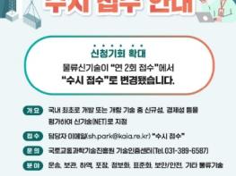 ‘물류신기술’은 글로벌 물류산업 경쟁력 강화를 위해 물류분야에 활용되는 새로운 기술 개발을 촉진하고, 기술 개발자를 지원하기 위한제도로서, 이번‘수시 접수’체계 도입을 통해 신청인이 공고기간 내 신청서류를준비하지 못해 접수 시기를 놓치는 문제를 해결하고, 개발자가 원하는 시기에 신청할 수 있도록 하여 물류신기술 신청 문턱을 낮추게 된다.