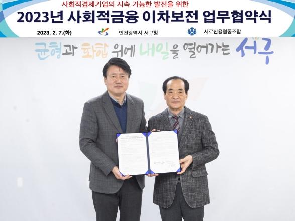 [중앙뉴스라인, 송상교기자] 인천 서구가 7일 서로신협과 ‘2023년 사회적금융 이차보전 업무협약’을 체결하고 사회적경제기업 지원에 힘을 모은다고 밝혔다.