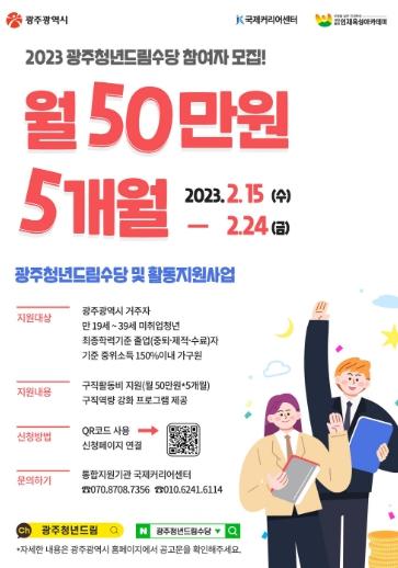 광주시는 미취업 청년의 구직활동에 필요한 경비를 지원하는 ‘광주청년드림수당 및 활동지원사업’으로 지난해 1200명보다 16.7% 늘어난 총 1400명에 게 1·2기로 나눠 지원한다.