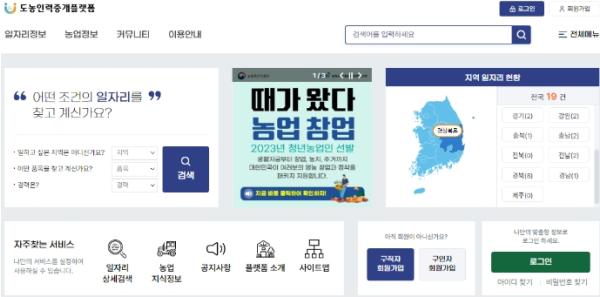 [중앙뉴스라인, 장성대기자] 농림축산식품부는 2월 13일부터 농업 분야 일자리 정보를 통합 제공하는 ‘도농인력중개플랫폼’ 대국민 서비스를 개시한다고 밝혔다.
