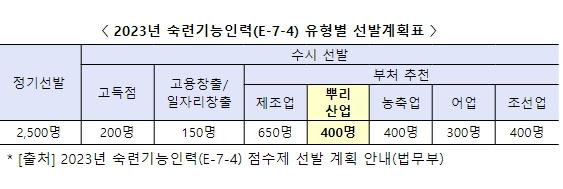 [중앙뉴스라인, 장성대기자] 산업통상자원부는 2월 13일, '2023년 외국인 숙련기능인력 점수제 비자(E-7-4) 전환 관련 뿌리산업 분야 산업통상자원부 추천계획'을 공고하고 국가뿌리산업진흥센터를 통해 2월 20일부터 접수를 시작한다.
