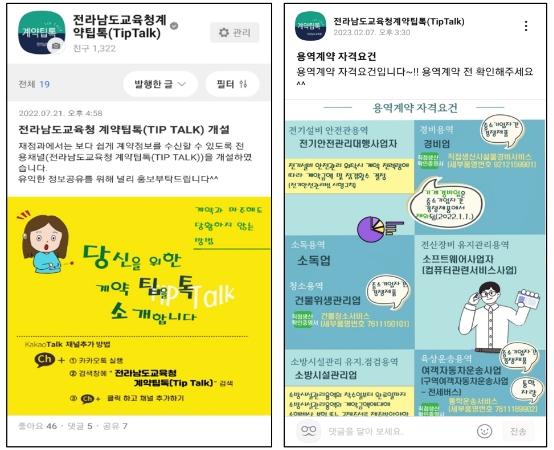 전남교육청 계약팁톡(TipTalk) 채널 운영 호평