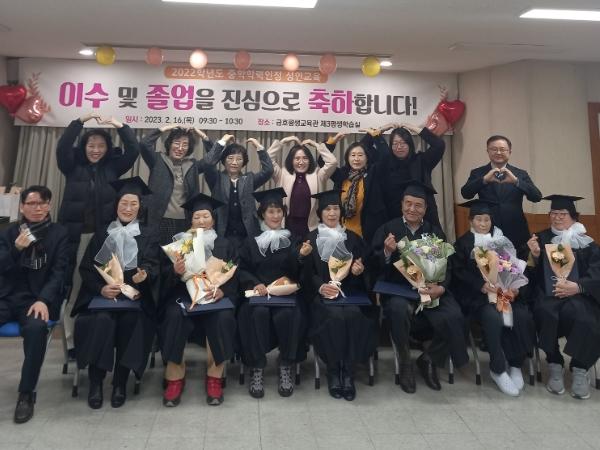 [중앙뉴스라인, 김병연기자] 금호평생교육관이 지난 16일에 2022학년도 중학학력인정과정 성인교육 졸업식을 개최했다.