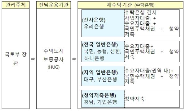 전국 및 지역 일반수탁은행은 수요자 대출(구입·전월세자금 대출), 국민주택채권, 청약저축 업무를, 청약저축 수탁은행은 청약저축 관련 업무를 수행하게 된다.