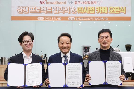 임택 동구청장은 지난 17일 SK브로드밴드㈜ 광주사옥 로비에서 SK브로드밴드㈜와 청년 예비사회적기업인 ㈜시점 간 상생 협약식을 갖고, 사회적 가치 실현을 위해 뜻을 모아나가기로 했다.