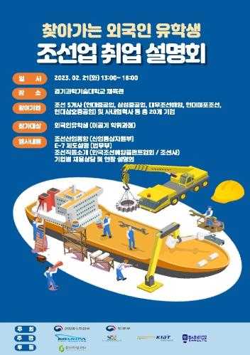 [중앙뉴스라인, 장성대기자] 산업통상자원부와 법무부는 외국인 유학생의 조선업 취업과 기업의 구인을 지원하기 위해, 2월 21일 경기과학기술대학교에서 ‘찾아가는 외국인 유학생 조선업 취업설명회’를 개최했다.
