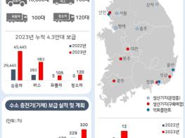수소차는 22년 말 기준으로 29,733대 보급 되어 있으며, 환경부는 연말까지 넥쏘 1만 6천대, 버스 700대, 화물차 100대, 청소차 120대 등 1만 6,920대를 추가 보급하여 총 4만 7천대를 보급할 예정이다.