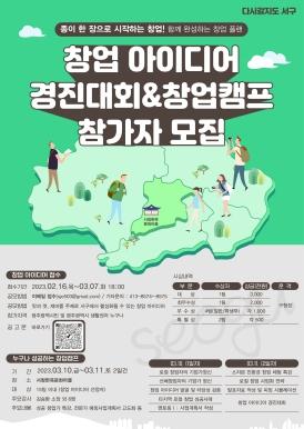 서구는 우수 아이디어 15개를 1차 선발해 이틀간 창업캠프를 진행한 후 경진대회를 개최해 최우수작을 가려 서구스타트업 입주 및 사업화 자금 연계 등 창업 지원을 이어갈 계획이다.