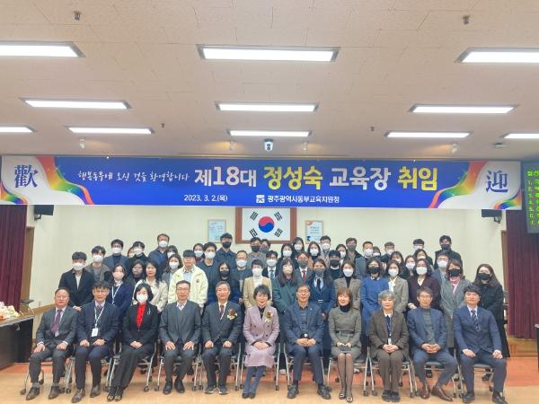 정성숙 교육장은 취임사를 통해 “새로운 광주교육 시대를 맞이해 모든 아이들이 꿈꾸는 미래가 현실이 되도록 다양성을 담은 실력향상에 앞장서겠다”며 “행복한 광주동부교육실현을 위해 새로운 광주교육의 가치와 변화를 담아내고 한 걸음 더 다가서서 학교 현장을 지원하겠다”고 말했다.