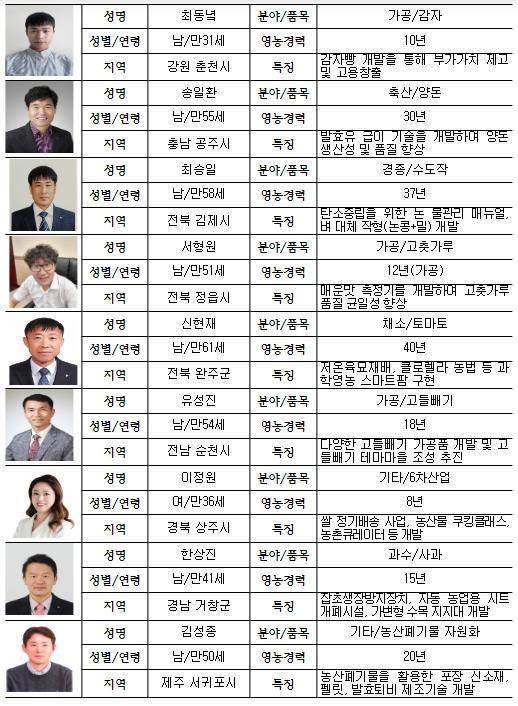 정 장관은 축사를 통해 “우리 농업이 미래성장산업, 수출산업으로 힘차게 도약할 수 있도록 신지식농업인 여러분이 앞장서 주시고, 농업·농촌에서 새로운 가능성을 발견하고 적극적으로 도전하는 청년 농업인들의 멘토가 되어 경험과 지혜를 나눠줄 것”을 당부했다.