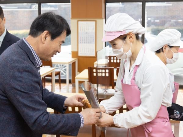 이날 오전 이정선 교육감과 장우삼 부교육감 등 간부들은 각 과 사무실을 방문해 직원들을 격려하며 미리 준비한 빵과 장미꽃을 전달했다.