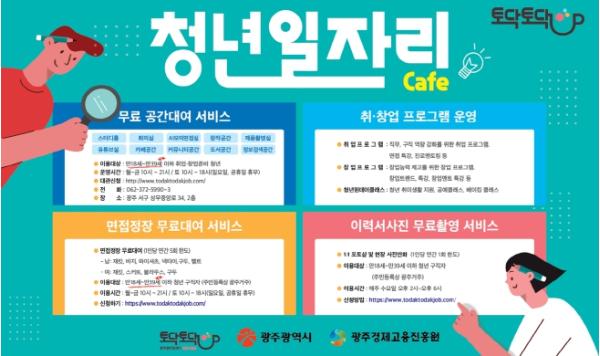 이 밖에 일자리공유카페(동구), 청춘발산공작소(서구), 청년와락(남구), 청춘이랑(북구), 청청플랫폼(광산구) 등 자치구에서 운영하는 취·창업 지원 서비스도 이용 가능하다.