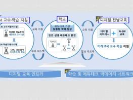 셋째, 디지털 교육 인프라(Infrastructure) 구축은 미래수업을 위한 에듀테크 공간 구축 및 기자재를 보급하고, 디지털 기반 업무 혁신으로 교원의 업무경감 및 효율성 제고를 이룬다는 계획이다.