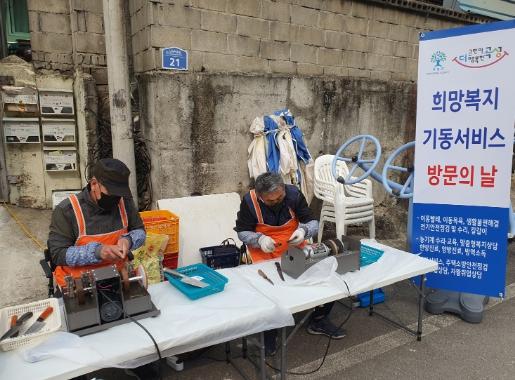 이번 희망복지 기동서비스에서는 다림돌 봉사단의 칼갈이 서비스가 단연 최고의 인기를 얻었다. 마을 어르신들은 복지서비스를 받기 위해 마을회관 앞으로 칼, 낫, 가위 등이 담긴 꾸러미를 가지고 나왔다.