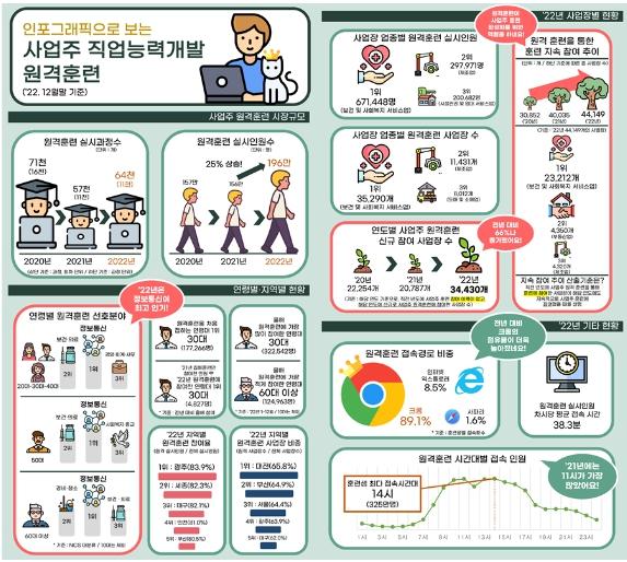 [중앙뉴스라인, 장성대기자] 한국산업인력공단은 2022년도 사업주 직업능력개발 원격훈련 현황의 인포그래픽 안내자료를 발표했다.