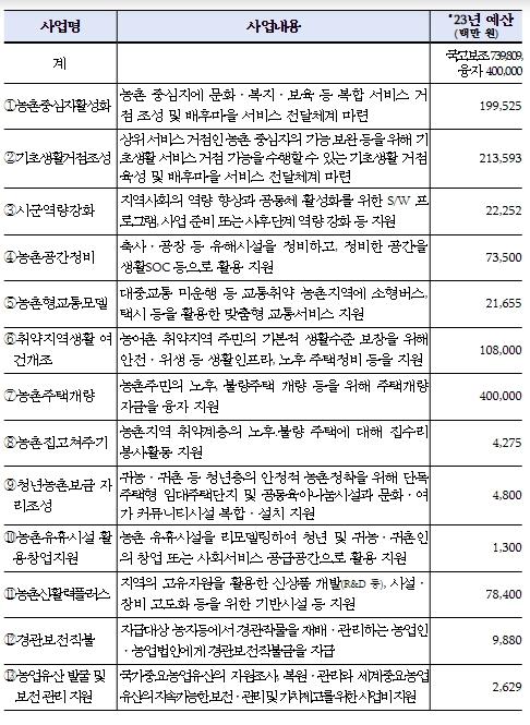 ⑧ 농촌집고쳐주기, ⑨ 청년농촌보금자리조성, ⑩ 농촌유휴시설활용창업지원,