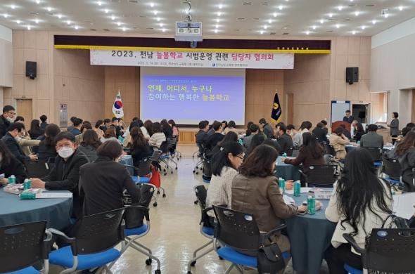 시범운영 학교 교감과 행정실장, 교육지원청 담당자 등 110여 명이 참석한 가운데 열린 이날 협의회에서 참석자들은 2023. 전남 늘봄학교 운영 현황과 향후 추진 계획을 공유하고 학교와 교육지원청 간 협력 방안을 협의했다.
