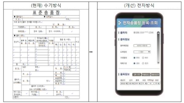 특히, 농식품부는 서울특별시농수산식품공사와 협업하여 전자송품장 출하자 입력 편의 및 도매시장법인 참여 등 전자송품장 활성화 유도를 위해 전국 도매시장 표준 사용자 입력 화면(UI) · 입력 방법 · 전산시스템 프로세스를 마련하여 출하자 전산 입력 편의를 향상할 계획이다.