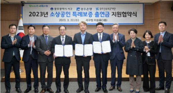 서구는 22일 서구청 이음홀에서 광주은행, 광주신용보증재단과 ‘영세 소상공인 특례보증을 위한 출연금 지원 협약’을 체결했다. 이 협약을 통해 서구가 2억원, 광주은행이 1억원을 각각 출연하기로 했으며 광주신용보증재단은 출연금의 12배인 36억원 규모의 신용보증을 지원하기로 했다.