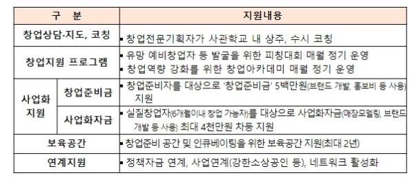 심화 단계에는 창업 아이템을 구체화 할 수 있도록 ‘창업준비금’을 신설해 5백만원까지 지원하고, 공유가게·스튜디오·공방 등 보육공간도 최대 1년까지 제공해 준비된 창업을 유도한다.