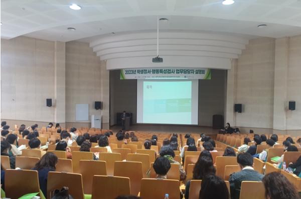 31일 시교육청에 따르면 이번 설명회에는 관내 초·중·고 및 전문기관 학생정서·행동특성검사 업무담당자 340여 명이 참석했다. 2023년 학생정서·행동특성검사 업무의 전반적인 흐름과 검사 일정 등 주요 변경사항, 나이스 시스템 사용 방법에 대한 내용으로 진행됐다.