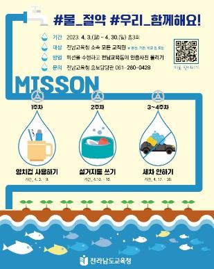 참여 대상은 전남교육청 소속 교직원이며, 4주 동안 3개의 물 절약 실천 과제가 제시된다.