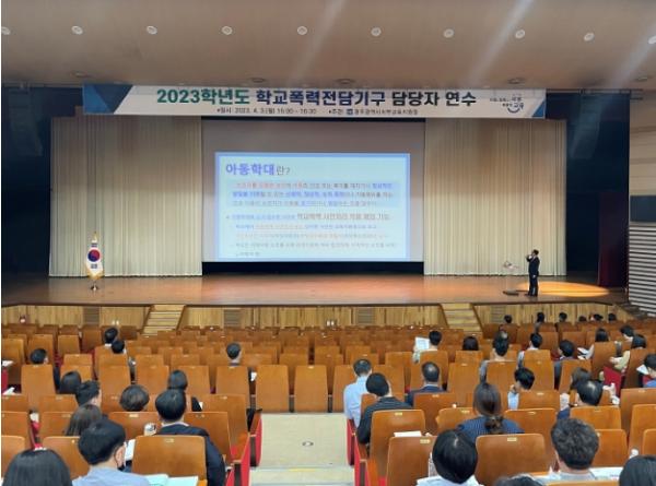 [중앙뉴스라인, 김병연기자] 광주서부교육지원청이 지난 3일 서부 관내 교감 및 생활부장, 생활교육 담당 교사들로 구성된 초·중·고·특수학교 전담기구 위원 대상으로 '2023 학교폭력전담기구 연수'를 실시했다.