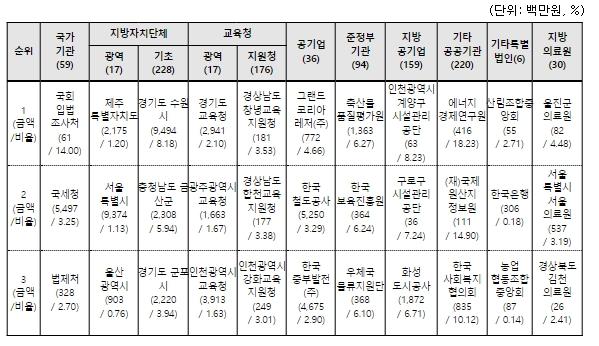 특히, 에너지경제연구원(기타 공공기관)은 총구매액(약 22억 원)의 18.2%(약 4억 원)를 중증장애인생산품으로 구매하여 가장 높은 우선구매 비율을 보였으며, 한국토지주택공사(공기업)는 약 416억 원(구매 비율 1.38%)으로 가장 많은 중증장애인생산품 구매금액을 기록했다.