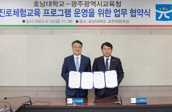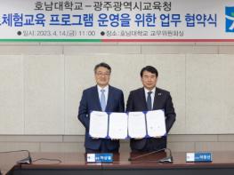 [중앙뉴스라인, 김병연기자] 광주시교육청이 14일 호남대학교와 진로 체험교육 프로그램 활성화 및 청소년 e-스포츠 교육 협력을 위한 업무협약을 체결했다.