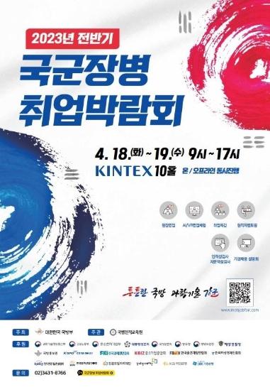 [중앙뉴스라인, 장성대기자] 국방부는 4월 18일부터 19일까지 2일간, ‘2023년 전반기 국군장병 취업박람회’를 일산 킨텍스 10홀과 공식 누리집에서 온?오프라인 방식으로 동시에 개최한다.