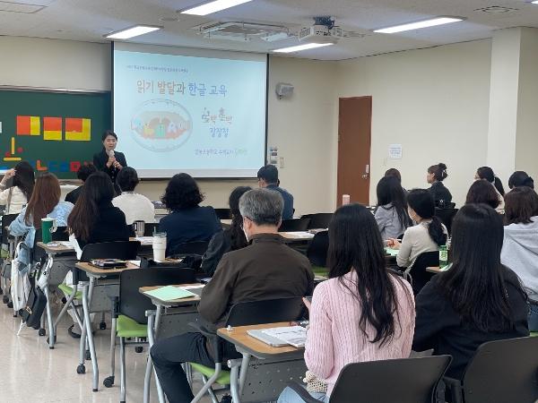 연수 과정은 수업에 직접 적용할 수 있는 체험형 연수로 구성했다. 한글교육의 기본역량인 ▲읽기 발달과 한글 교육을 시작으로 ▲읽기 유창성 지도 ▲받침 없는 글자 지도 ▲받침 있는 글자 지도 등의 교육이 이뤄졌다. 교육은 현장에서 한글 교육에 어려움을 겪는 교사들에게 도움이 되도록 진행됐다.