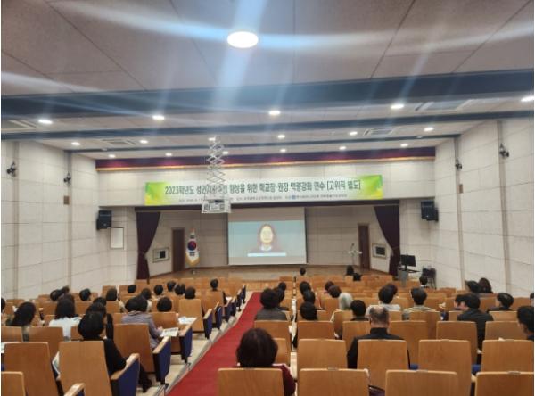 이날 연수 강사로는 한국젠더문화연구원 양동옥 원장을 초빙했다. 양 원장은 성평등한 조직문화 조성과 성희롱·성폭력 방지를 위해서는 학교(원)장의 전문성과 성인지 감수성이 중요하다고 강조했다. 이어 “학교장은 사안 발생 시 신속하게 피해 학생과 교직원을 보호할 의무가 있다”며 “학교 구성원 모두는 직급?나이?성별에 상관없이 존중의 언행을 실천하고 성역할이 아닌 일 역할을 기대하고 상대방의 경계를 존중해야 한다”고 말했다.