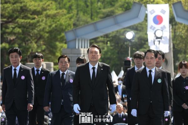 [중앙뉴스라인, 우제헌기자] 윤석열 대통령은 4. 19일 오전 국립4·19민주묘지에서 개최된 제63회 4·19혁명기념식에 참석해, 4·19혁명 열사의 뒤를 따라 어떠한 희생을 치르더라도 자유민주주의를 확고히 지켜내겠다고 밝혔다.