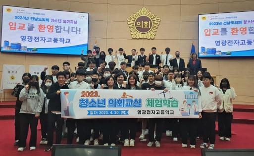 그리고 “젊은 세대가 정치에 대해 희망을 갖지 않고 투표율도 낮아지고 있지만 여러분들이 의견을 제시하지 않으면 그 어떤 것도 변하지 않는다”며 “오늘 체험해보는 청소년의회교실이 영광전자고 학생들의 민주시민 역량을 키우는 소중한 경험으로 남기를 바란다”고 격려했다.