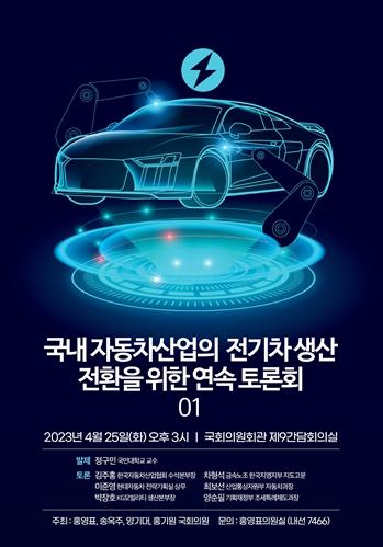 이날 토론회에서는 정구민 국민대학교 교수가 발제에 나서고, 김주홍 한국자동차산업협회 수석본부장, 이준영 현대자동차 전략기획실 상무, 박장호 KG모빌리티 생산본부장, 차형석 금속노조 한국지엠지부 지도고문, 최보선 산업통상자원부 자동차과장, 양순필 기획재정부 조세특례제도과장 등이 토론자로 나설 예정이다.