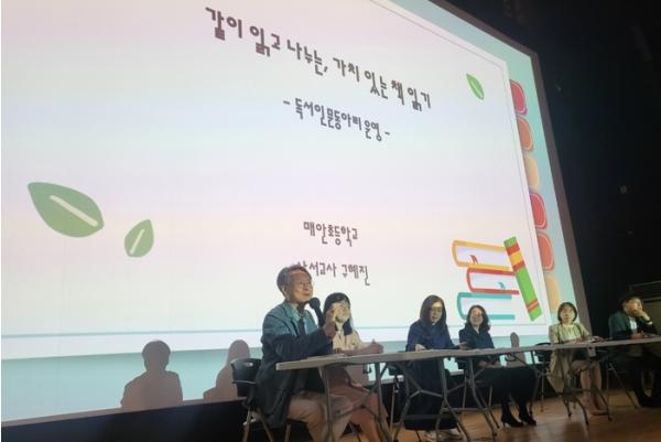 ‘독서인문동아리 운영방안’‘수업에 있어서의 독서교육’‘한 학기 한 권 읽기 교육’‘교과융합 독서인문 프로그램’‘학교도서관 연계 독서인문 프로그램’등 5개의 영역별로 이뤄진 주제발표는 초?중?고 대표교사 및 사서교사 5인이 맡아 진행했다. 이후 교사들의 요청으로 5영역 분과별 모임을 따로 열어 세부적 독서교육 운영방안을 논의했다.