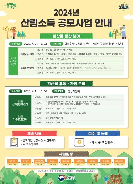 산림청, 2024년 산림소득 공모사업 접수 시작