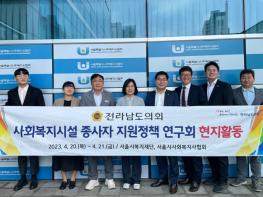 [중앙뉴스라인, 차행운기자] 전남도의회 의원 연구단체 ‘사회복지시설 종사자 지원정책 연구회’가 지난 20일부터 21일까지 이틀 동안 전라남도 사회복지시설 종사자 지원정책 방안을 모색하기 위해 서울시복지재단과 서울시사회복지사협회를 방문했다.