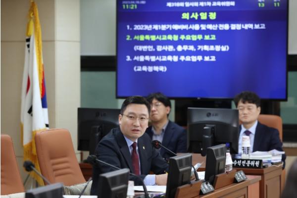 [중앙뉴스라인, 이승훈기자] 서울특별시의회 교육위원회 소속 고광민 의원(국민의힘, 서초구3)은 19일 개최된 제318회 임시회 서울특별시의회 교육위원회 회의에 참석하여 서초구 관내 위치한 동덕여자중학교의 경우 다른 학교들에 비해 다소 이른 시간인 11시 15분에 점심 급식이 시작되는 등 열악한 급식환경에 노출되어 있음을 밝히면서 동덕여중 학생들의 학습권과 건강권을 보장하기 위해 교육청 차원에서 서둘러 급식실 개선에 나서줄 것을 요청했다.