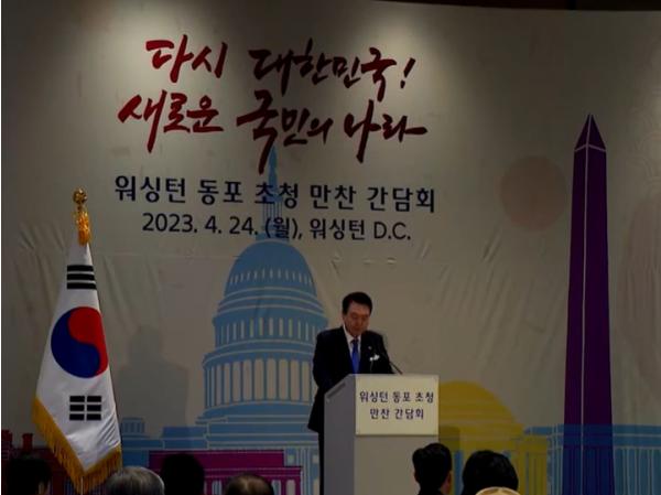 [중앙뉴스라인, 우제헌기자] 미국을 국빈 방문 중인 윤석열 대통령 부부는 4. 24일 저녁 美 워싱턴 D.C. 콘래드 호텔에서 현지 동포들을 초청해 만찬을 겸한 간담회를 가졌다.
