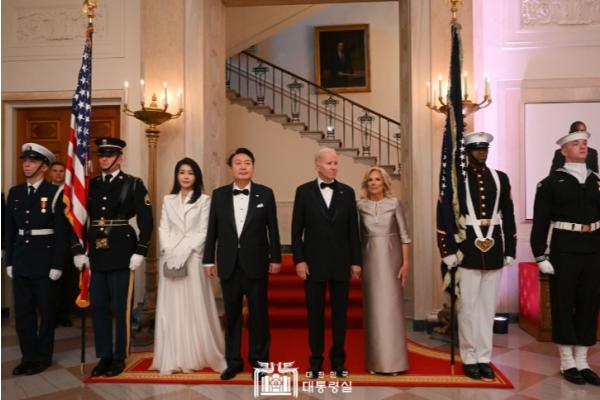 [중앙뉴스라인, 우제헌기자] 미국을 국빈 방미 중인 윤석열 대통령 부부는 현지시간 4. 26일 바이든 대통령 부부가 주최한 국빈 만찬에 참석했다.