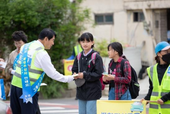 3일 동부교육지원청에 따르면 이번 캠페인은 인근 아파트 단지 조성으로 인해 광주효동초 학생 수가 급격히 증가함에 따라 마련됐다. 등교 시간 어린이 교통안전에 대한 경각심을 일깨우기 위한 목적으로 진행됐다.