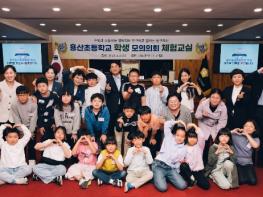 용산초 23명의 학생들은 의회 설명과 함께 회의장을 둘러본 후 각자 역할을 나눠 “학교폭력 예방을 위한 실천 방안”을 발의하고 토론을 거쳐 표결까지 진행하면서 민주적 의사결정 과정을 체험했다.
