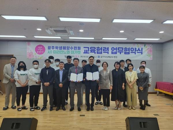 [중앙뉴스라인, 김병연기자] 광주학생해양수련원이 지난2일 ‘사단법인 마리안느와 마가렛’과 함께 광주 학생들에게 ‘소록도 역사 알리기 교육 프로그램’을 운영을 위한 업무협약을 체결했다.