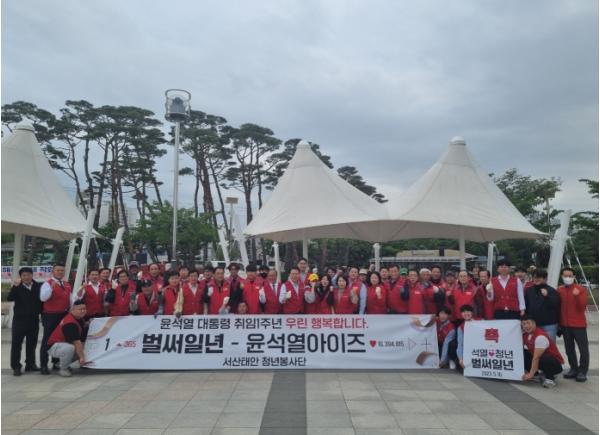 5월 10일 윤석열 대통령의 취임 1주년을 기념해 서산태안 청년봉사단과 함께 서산 예천동 호수공원 일대에서 환경정화 봉사활동 실시