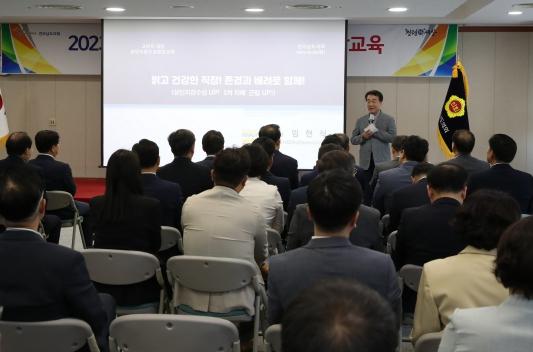 김태균 부의장은 “이번 교육을 통해 고위직의 성평등 감수성을 강화하고 건전한 조직문화 조성에 최선을 다하겠다.”며 “더 나아가 공감과 소통으로 모두가 건강하고 행복한 사회를 만들기 위한 정책 마련에도 노력하겠다”고 말했다.