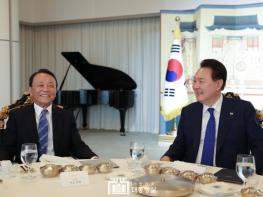 尹 대통령, 아소 前 일본 총리와 만찬...한일관계 발전에 관심 당부