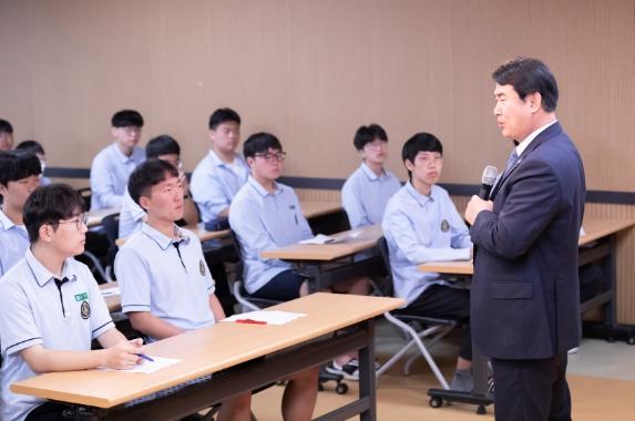 [중앙뉴스라인, 김병연기자] 이정선 교육감이 15일 스승의 날을 맞아 금호고 2-4반 학생들 대상으로 ‘비전, 꿈 그리고 노력’이라는 주제의 진로 특강을 실시했다.